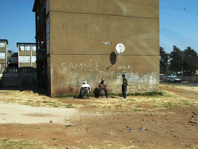 Westbury looks much like the projects in any U.S. city – crumbling tenement buildings, stray animals, and people sitting and walking about with expressions of casual resignation. I snuck some photos through the windshield.