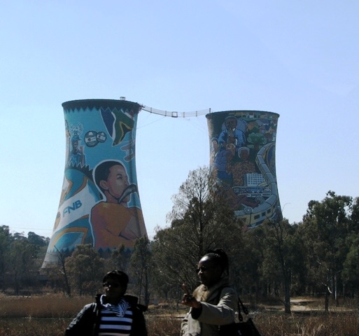 We continued our drive through Soweto and passed Baragwanath Hospital, reportedly the largest hospital in the Southern Hemisphere. We also saw Orlando Stadium, which hosted the opening concert for the World Cup last month, and the Orlando Power Station cooling towers, the most attractive coal plant cooling towers I’ve ever seen.