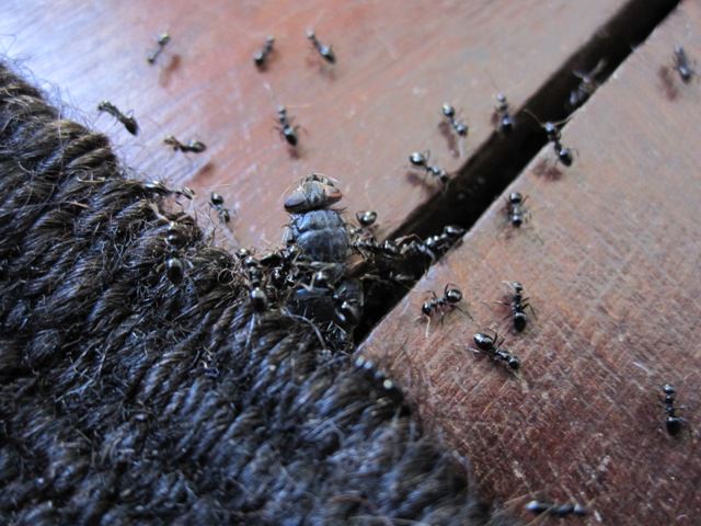 Lastly, we have a friendly ant colony in the house. I normally find ants very irksome. But they are tiny and stick primarily to one trail from the living room window to a crack in the wall on the other side of the room. Every now and then I catch one walking across my computer screen, but other than that they keep to themselves. The other day I watched them pry a dead fly from between the floor tiles and carry it across the room.