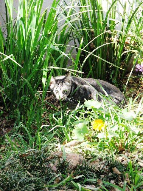 We also have a feline interloper. I don’t know her name. She initially tormented Fruffy so we were constantly chasing her from the premises. But now they’ve made friends so she’s allowed to hang around. I caught her staring at me through the window yesterday.