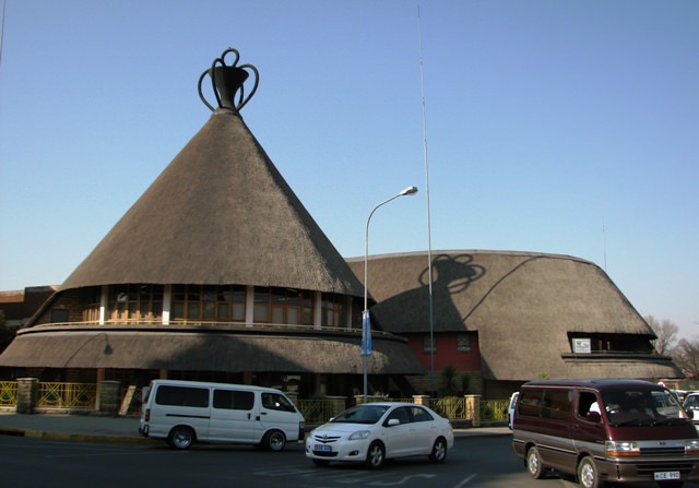 Maseru is the capital of Lesotho. The people of Lesotho are called the Basotho. At the center of town is the Basotho Hat – a thatched-roof building shaped like the conical hats that Basotho people wear. When we got to Maseru we drove straight to the hat because it’s right next door to the Elizabeth Glaser Pediatric AIDS Foundation, where we had a meeting. I used to work for EGPAF in Washington and Joe and I are doing a project with them here.