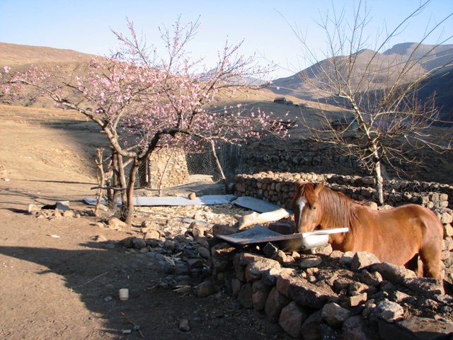 Potso and Rooikat arrived a few minutes after we did. Potso went into the clinic to pick up the blood samples – the patients in the waiting area stared at us curiously. Task complete, Potso got back on Rooikat and headed down the mountain. That turned out to be the last time we saw him.