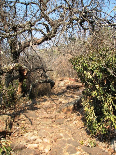 We followed a steep stone path up the hill. We observed a variety of interesting plants and trees, including the rock fig tree, which grows only on steep rock faces.