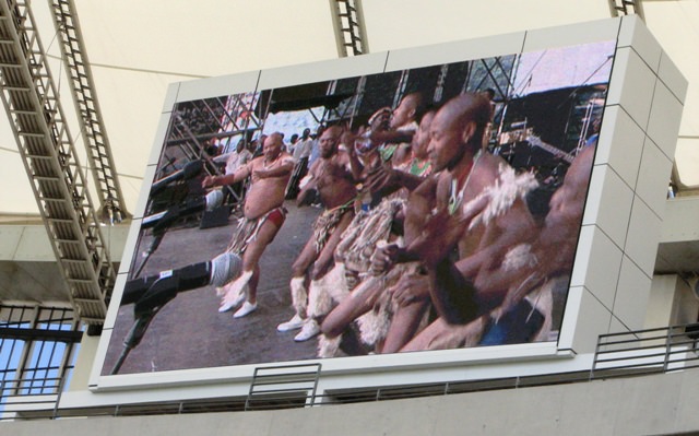 The events were interspersed with highlights from the World Cup, shown on the jumbotron. We saw every goal scored by Bafana Bafana, the South African soccer team, about 100 times. The crowd went wild each time.