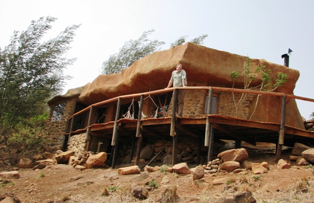 Over breakfast we had a long chat with Andrew, who has a fascinating life story that I couldn’t begin to tell in this blog. He showed us their newest room – the Cave – built under an overhanging rock looking out over the plains. Joe and I vowed to come back and stay there someday.