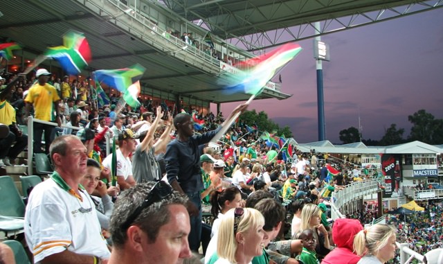 This photo was taken when it looked like South Africa would win. In the end, the home team came up one painful run short.