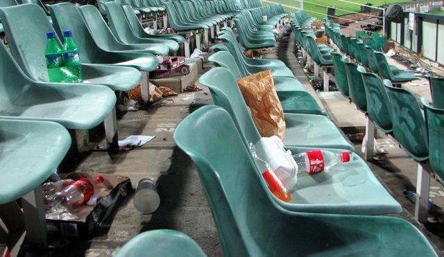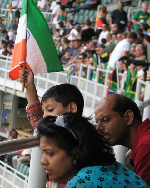 A crazy group of dancers advertising for MTN mobile network. They performed this dance just for me, but at the end I had to inform them that I’m sticking with Vodacom.Mini donuts, half chocolate and half caramel. They are a very popular stadium snack. I thought they were so-s0. (That lukewarm opinion didn’t stop me from inhaling them all in about five seconds.)A family of India fans. We may be in South Africa, but the crowd was split about evenly between the two teams. Cricket is HUGE in India.This is what a stadium looks like after eight hours of cricket.