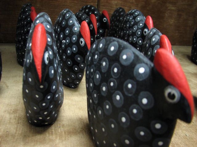 Paper mache guinea fowl at the Giraffe Centre. Mom bought two.