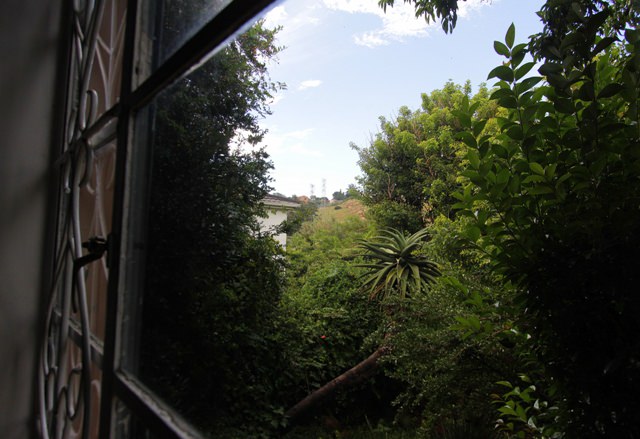 Our guest room has a great view of the garden and the Melville Koppies in the background.