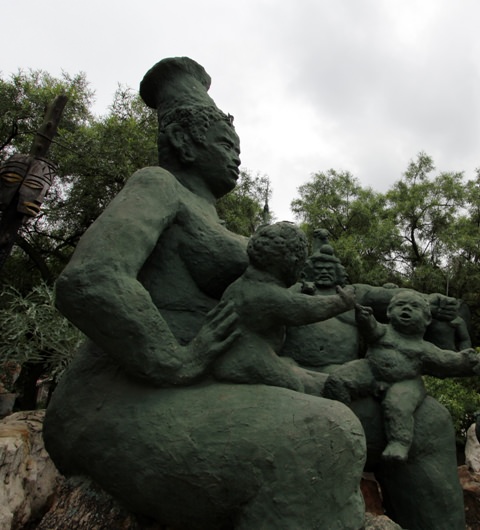 The cultural village at the foot of the tower, which is a collection of sculptures and traditional African dwellings, was created by the Zulu Shaman Credo Mutwa in the 1970s. Each part of the village has a specific spiritual meaning – I won’t try to explain it all because I’ll get it wrong and make a fool of myself. But it was fascinating and I’m grateful to Lebo for explaining everything to us.