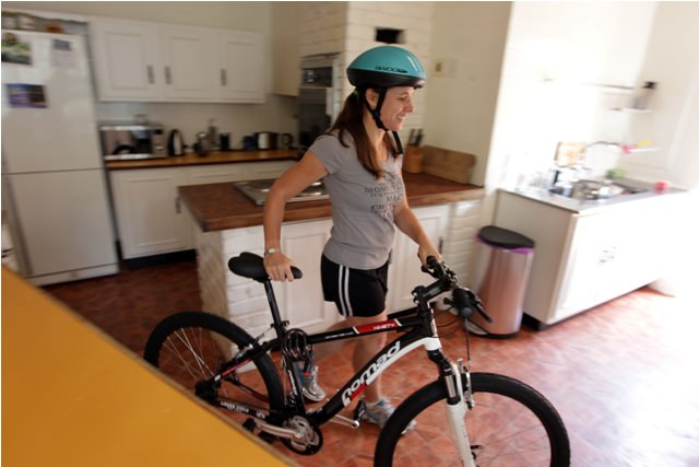The next day I prepared to ride to my gym at Rosebank Mall. I put my gym stuff in a backpack and strapped on my helmet. I paraded the Nomad out of the spare bedroom with great fanfare. Joe followed me in his car to document the start of my journey.