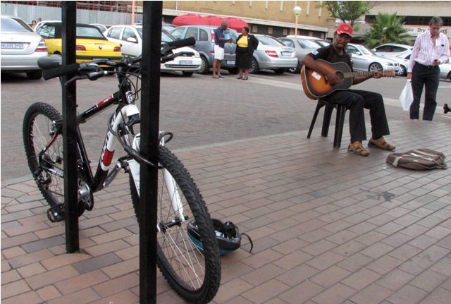 Back at the parking machine, I gave my musician friend five rand and thanked him for protecting the Nomad.