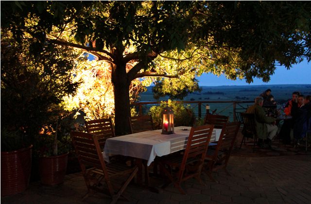 Guests enjoy pre-dinner drinks on the terrace at Lionsrock.