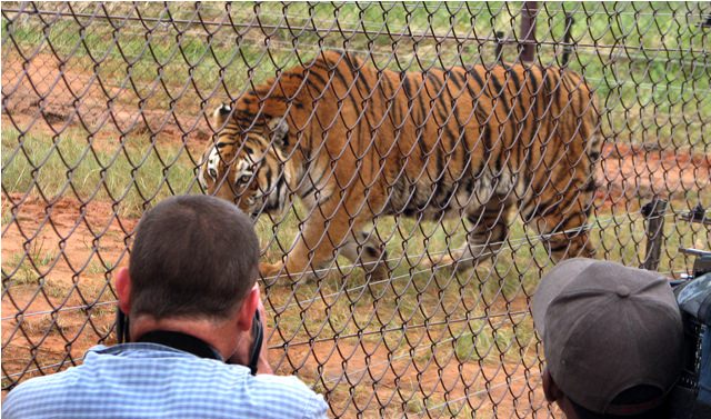 Four Paws invited members of the media to Lionsrock to witness the arrival of Martin, an 8-year-old Bengal tiger, and Bagira, a 15-year-old lioness. Martin and Bagira were rescued from zoos in Bulgaria and traveled more than two days by air and road to reach their new South African home.