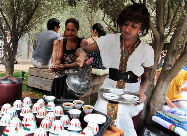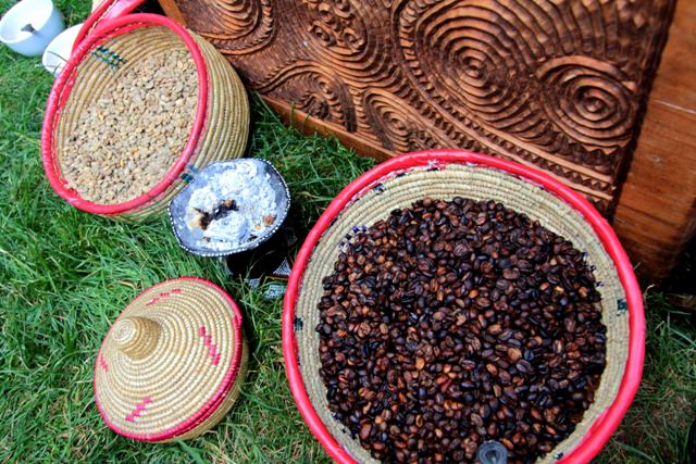 Photo courtesy of Joe.The coffee ladies roast the beans on the spot in a small tin pan. The smell of the beans somehow blends perfectly with the scent of burning incense. You can buy these beans, raw or roasted, from Abyssinia Coffee in Joburg Mall at the corner of Jeppe and Delvers Streets. (Photo courtesy of Joe.)