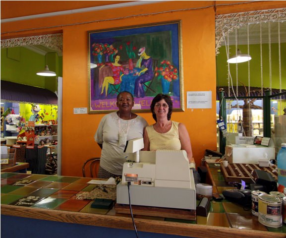 Right in the center of it is Koljander (Afrikaans for “coriander”) – a 30-year-old cooperative home industry shop run by women. Koljander sells baked goods, ethnic food, jam, jewelry, clothing, and art – pretty much anything people can make with their own two hands. You could go there 100 times and discover something new and fabulous each time. The store also does a booming catering business, with wedding cakes being a particular specialty.