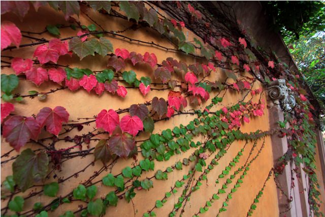 Fall colors on a wall in Melville this afternoon. There is some indigenous fall foliage to be found around here but this creeper obviously came from Europe.