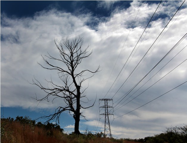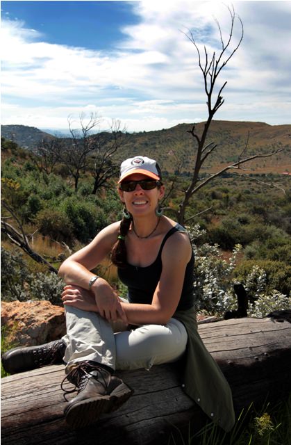 A 120-year-old gold stamping machine is on display near the entrance to the reserve. Kloofendal was founded on the grounds of an old mining operation and the shafts have been restored and turned into a national monument. You can tour the shafts by appointment and on special open days.I love this sign.The most interesting part of the reserve’s landscape is the dead trees. Blue gums are an invasive species in South Africa and there is a campaign to poison them in the reserve. The tree carcasses are eerily beautiful.Dead tree and powerlines.I decided to take a break on one of the dead trees. (Photo courtesy of Joe.)Leonotis leonurus, also known as lion’s tail. We walked through several huge stands of these. The plants are taller than I am.Cool rocks.It was a good day. (Photo courtesy of Joe.)