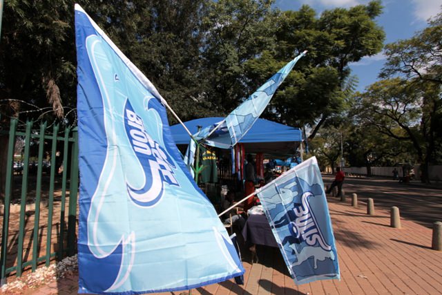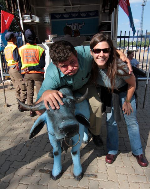 Flags are a big deal for South African sports fans. Note that these flags are half blue and half red. Vodacom, the Bulls’ title sponsor, recently changed its official color from blue to red. Not good news for the BLUE Bulls – the team’s branding is a bit schizophrenic now.A couple of traditional "Blou Bulle" flags. Wikipedia says the team was called the Blue Bulls until 1998, when it became the Bulls. Everyone still calls them the Blue Bulls, but it seems like they should be called the Red Bulls now anyway.Baby Bulls.