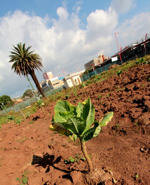 This is a cabbage plant. I never knew cabbages could grow on trunks! Apparently you can pick the leaves off one by one and the plant will keep growing.I met Refiloe and her daughter Beautiful (a very appropriate name) in the garden. Refiloe lives nearby and works in the garden. She uses the food for herself and her family, and also sells vegetables through the fence to passersby. I like what Refiloe told me about why she works at the garden: "If you don’t do anything, nothing will happen."