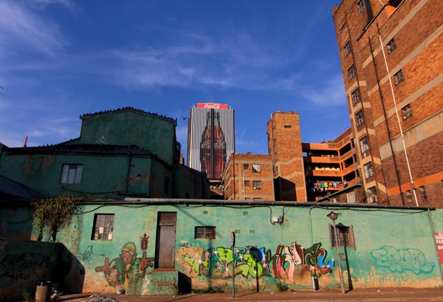 Old Chinatown dead-ends at the Johannesburg Central Police Station, formerly known as John Vorster Square. This building (the ugly blue one in the photo above) has a notorious history – thousands of political prisoners were interrogated, tortured, and even killed there during the apartheid era. Online information about John Vorster Square is scant, but scroll halfway down this page to learn more.