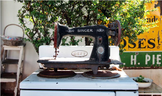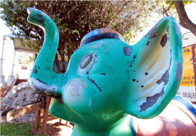 A life-size Dumbo toy in the yard at Ruth’s Antiques.An ancient sewing machine rests on an old stove. Why? I don’t know.Don’t ask me what this is about.