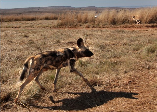I had never seen African wild dogs, among the most endangered mammals on earth, and there is a good-sized pack living at the reserve. I wasn’t disappointed. The dogs are fed every Saturday at 1:00, and we got there early for a prime viewing spot. The dogs knew they were about to be fed and cavorted around the parked cars waiting for feeding time.