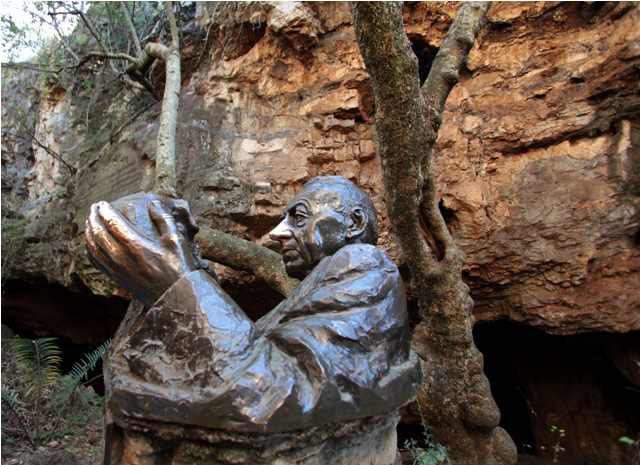 The cave is beautiful but my cave photography isn’t ready for prime-time. I did get decent a shot of this statue of Dr. Robert Broom, who discovered Mrs. Ples, which stands at the exit of the cave. Dr. Broom’s hands and his nose are extra shiny; visitors are supposed to rub either the hands to gain wisdom or the nose to gain good luck. I went for the nose.
