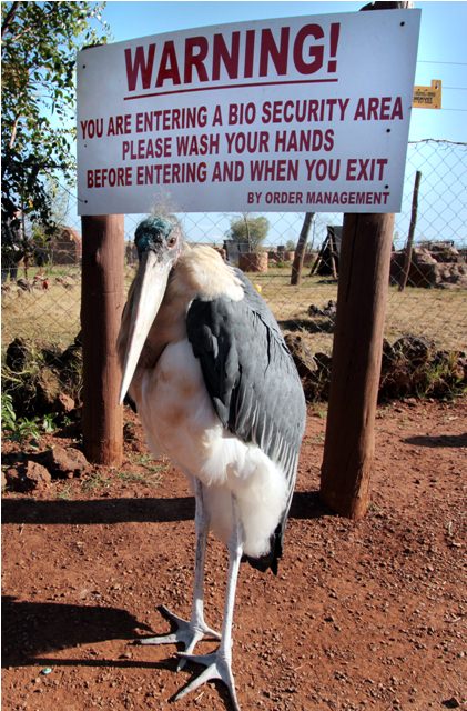 Our final stop at the reserve was a kind of zoo area, where there is also a small restaurant and a children’s play area. There were several marabou storks on guard at the entrance.