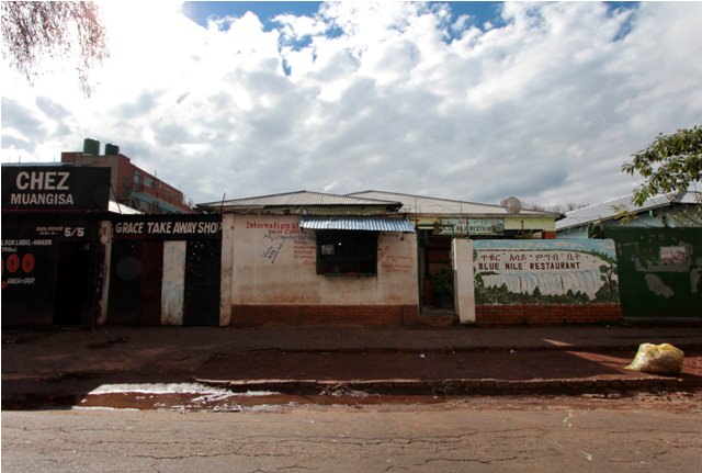 Most of Yeoville’s residential buildings are crumbling and occupied by squatters. The main drag, Raleigh St., is crammed with pedestrians, loiterers, tiny shops, and hole-in-the-wall restaurants serving home-cooked dishes from across the continent. Yeoville is noisy, dirty, colorful, and a little dangerous. In other words, my kind of place.