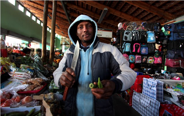 I didn’t take pictures on the street, but I felt safe enough to whip out my camera inside the cavernous Yeoville market. I’m glad I did because I got to photograph Daniel, the best-looking man in Yeoville.