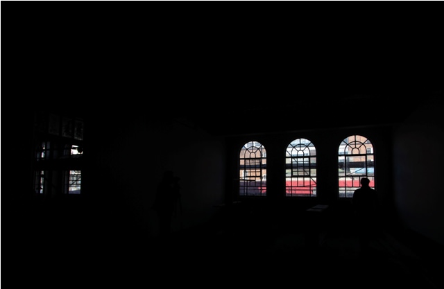Photowalkers scramble for pictures in the half-finished building, under a security guard’s watchful eye.