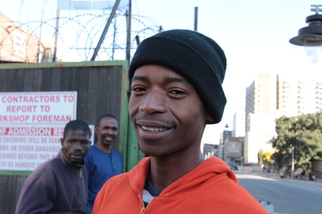 Vusi and his friends hanging out at the entrance to the Hillbrow Health Precinct.
