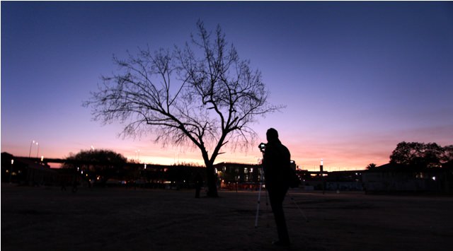 A Photowalker stops to capture the sunset on his way to the "Painting with light" photowalk in downtown Jozi. (Photo courtesy of [Joe](/about-joe/ "About Joe").)