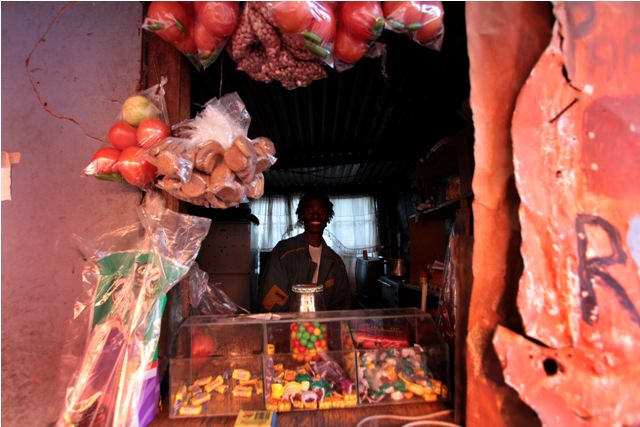A Diepsloot shop-owner with colorful wares for sale.Is he the customer or the salesmen? And what’s for sale?