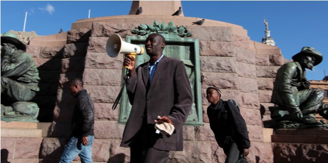 This statue of Paul Kruger, political and military hero of the former Afrikaans Transvaal Republic, sits at the center of Church Square and provides a striking juxtaposition of old and new South Africa.An energetic and articulate street preacher entertains the crowd in Church Square.
