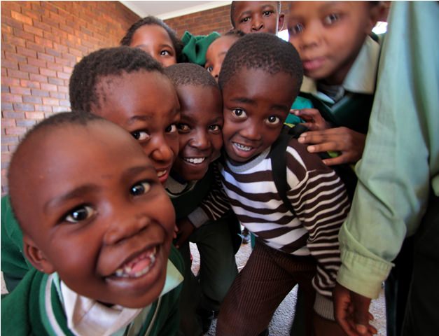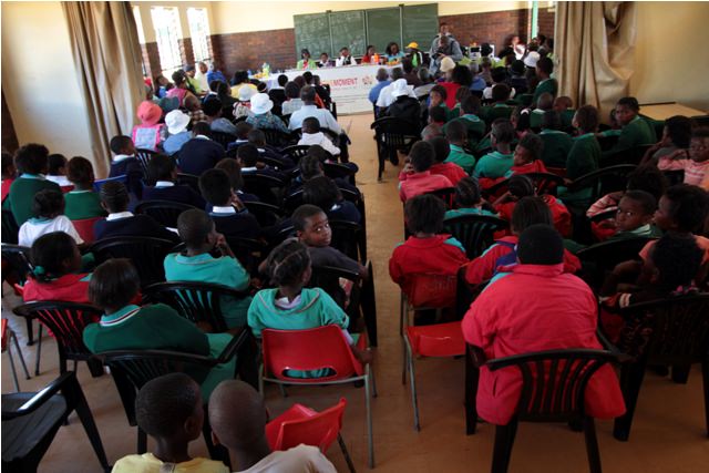 A barren schoolyard at Mogajane Primary School in Northwest Province, two hours and a world away from Joburg. HIV is prevalent here, and many of the children in the area have lost parents to AIDS. Some are living with HIV themselves. Badirammogo is based at the school.My camera has been spotted. Time to play photo-share.The onslaught arrives.The donation ceremony took place in the main hall of the school. The hall was packed with school kids and people from the Mogajane community.