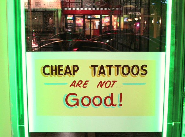 Reading these signs makes me feel better about spending my hard-earned money on a tattoo from a reputable establishment. I can’t afford it, but a tattoo isn’t the kind of thing you want to bargain-shop for.