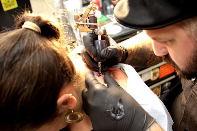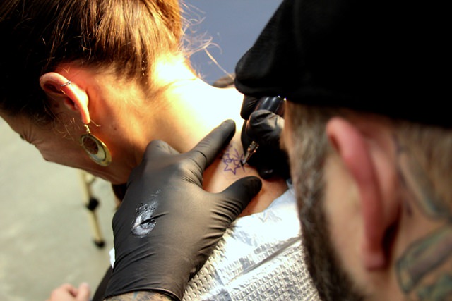 Scott applies the first bit of ink to my Lucky 5 Stars. Despite my wincing, it doesn’t actually hurt that much. (Photo: Claire)Painting stars. (Photo: Claire)
