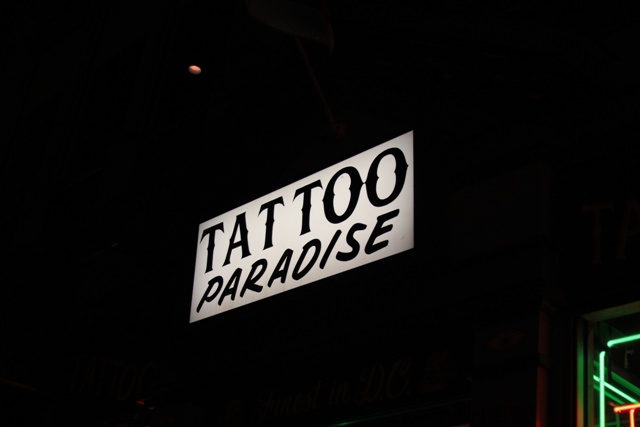 Welcome to Tattoo Paradise, the finest tattoo parlor in our nation’s capital.Dear tattoo lady: I know you’ll be unhappy that I’m posting this pic. But I can’t help myself.