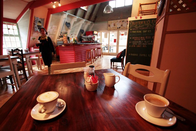 It’s a chilly morning in Hogsback. Joe and I just finished a pre-breakfast hike to a majestic waterfall at the top of a mountain. We’re hungry. We are the only customers in the quirky Butterfly Bistro, sitting at a cozy table next to a clay fireplace.