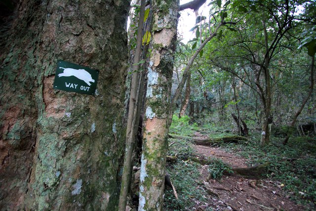 The Forbidden Forest.Swallowtail Falls, one of many lovely waterfalls in the forest.Thank goodness for these hog trail markers. It’s a beautiful forest but not the kind of place you want to get lost in.