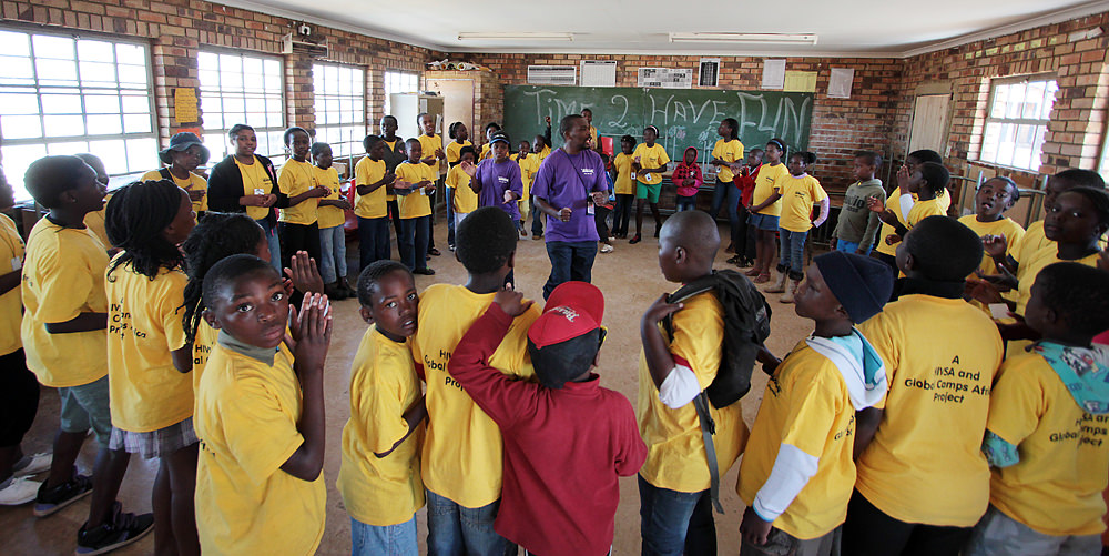 Day camp in Kagiso – a township surrounded by factories and mine dumps on Johannesburg’s far western edge – is much like day camp at the average American YMCA. But with a lot more singing and dancing.