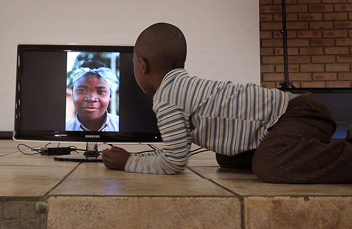 My favorite photo from the Diepsloot Photowalk – a little boy doing his own version of the photo-share. (Photo courtesy of Joe)