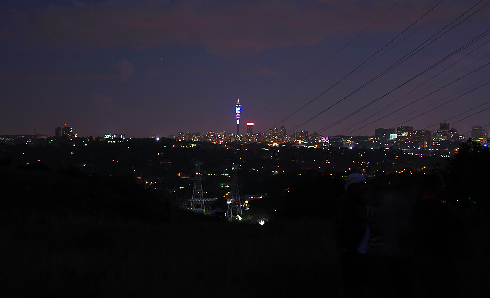 City skyline at night. A rare photographic opportunity, as the Koppies normally close at dusk.