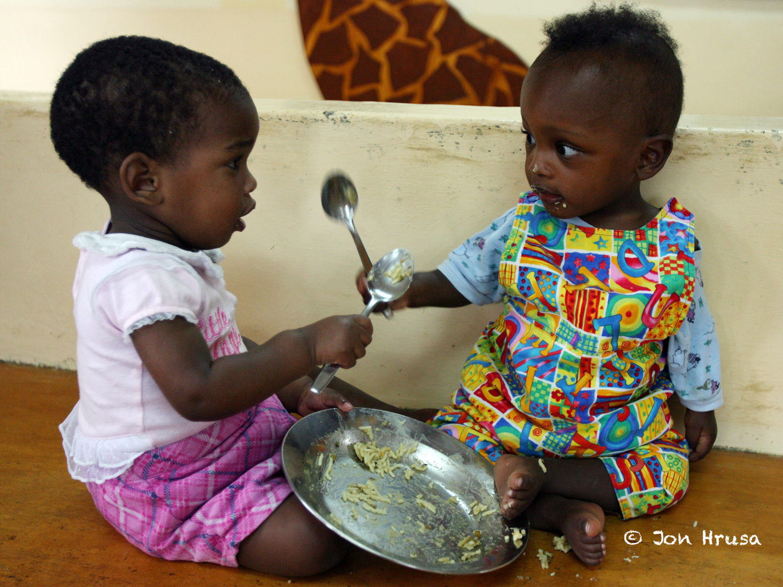 At first the kids were like magnets, crowding around him and peering into his lens. But eventually they all returned to their normal business, laughing and crying and smearing porridge on themselves, and on each other.