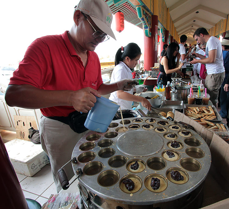 Delicious-looking Chinese chocolate-custard desserts. I really wanted to try one, but I waited too long and by the time I was ready it was too crowded to get anywhere close. I settled for soggy spring rolls.