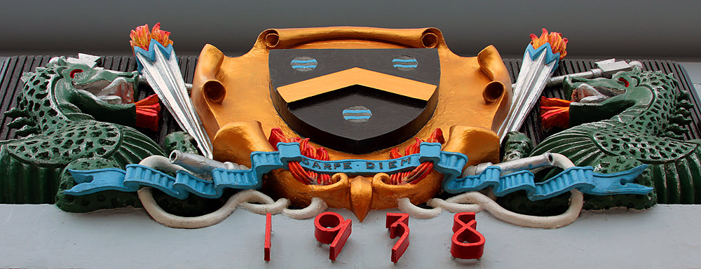 This large coat-of-arms-like decoration hangs above the door of the fire station. I have no idea what it means, but it’s funny that the fire station is guarded by fire-breathing dragons.