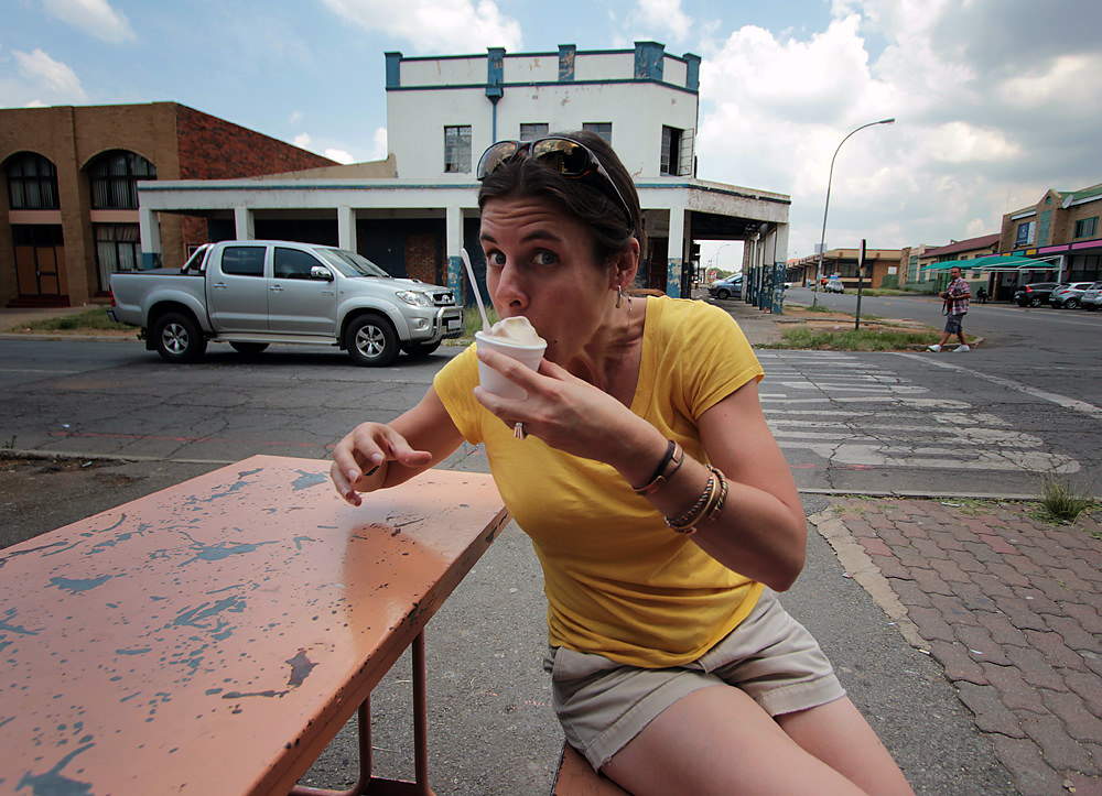 The ice cream people didn’t know what hit them – they couldn’t freeze the soft-serve fast enough for us. I had a cup of Bar One flavor (Bar One is a candy bar, kind of like a Milky Way) mixed with vanilla for R4.50 (about $.60).
