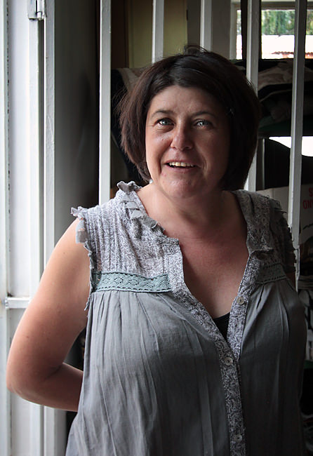 About 30 minutes after we arrived, Anita had a small truckload of clothing in her arms for the two of us to try on. I went first, into the bathroom that doubles as a fitting room. I dumped the truckload and got started.